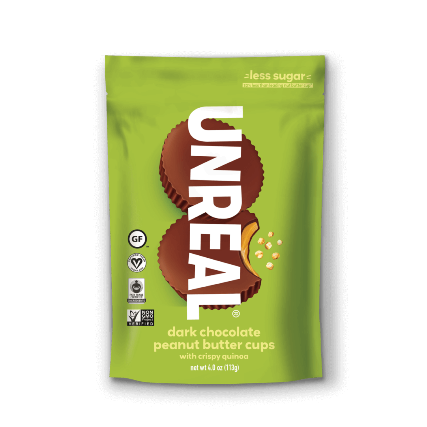 Peanut Butter Cup perfection with a happy crunch of quinoa! Unreal Dark Chocolate Peanut Butter Cups with Crispy Quinoa combine the perfect mix of textures in one satisfying treat -- with creamy peanut butter melt-in-your-mouth dark chocolate and crunchy crisped quinoa. These chocolates are free of dairy, gluten, soy, and corn ingredients. UNREAL is on a mission to change the world one snack at a time, free of artificial flavors, dyes, and preservatives, made only with Fair Trade Certified and non-GMO Project Verified ingredients.
